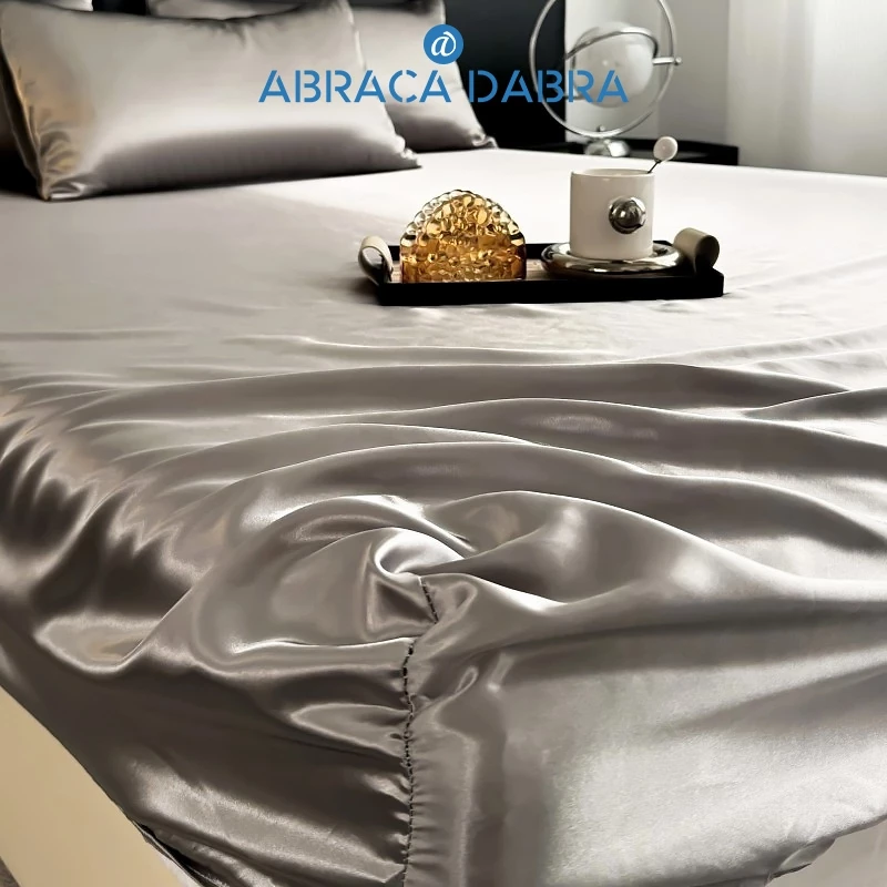Abraca Dabra ผ้าปูที่นอนรัดมุมซาติน ผ้าปูที่นอนผ้าไหมธรรมดานุ่มพร้อมยางยืดหยุ่น (ไม่มีปลอกหมอน) 3 ฟุต/3.5 ฟุต/5 ฟุต/6 ฟุต
