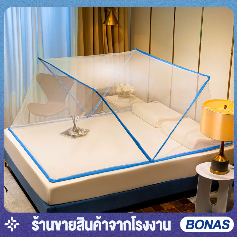 BONASพร้อมส่ง มุ้งกันยุง มุ้งนอน มุ้ง มุ้งพับเก็บได้ 4ฟุต 5ฟุต 6ฟุต 1-3คน ล่างเพื่อป้องกันเด็กตกจากเตียง