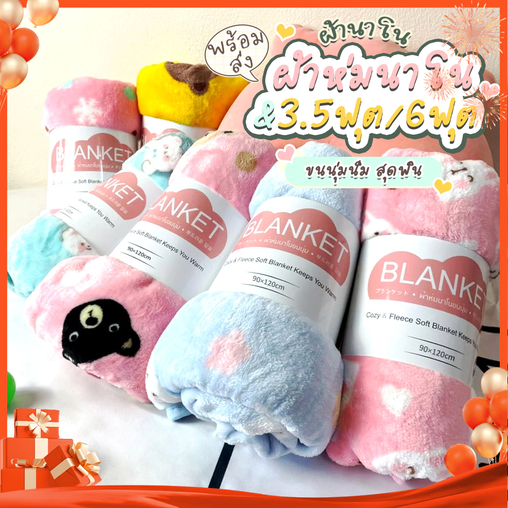6ฟุต/3ฟุตผ้าห่มนาโน เบาสบาย กันหนาวได้ ลายน่ารักมาก ผู้ใหญ่คลุมได้ 90*120/90*180